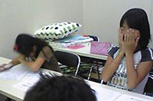 受験本番、とても緊張しているこども達。